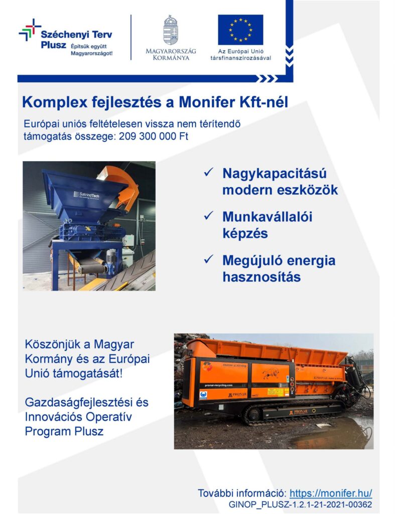 GINOP_PLUSZ-1.2.1-21-2021-00362 – Komplex fejlesztés a Monifer Kft-nél